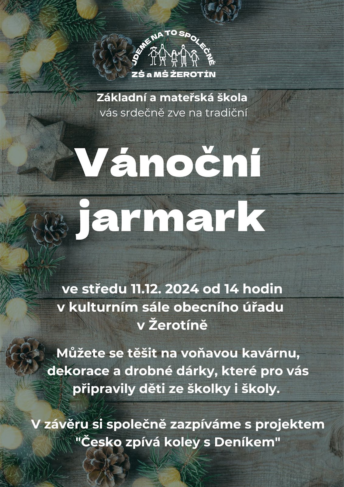 Srdečně Vás zveme na Vánoční jarmark, který se uskuteční ve středu 11.12.2024 od 14 hodin v kulturním sále obecního úřadu v Žerotíně.